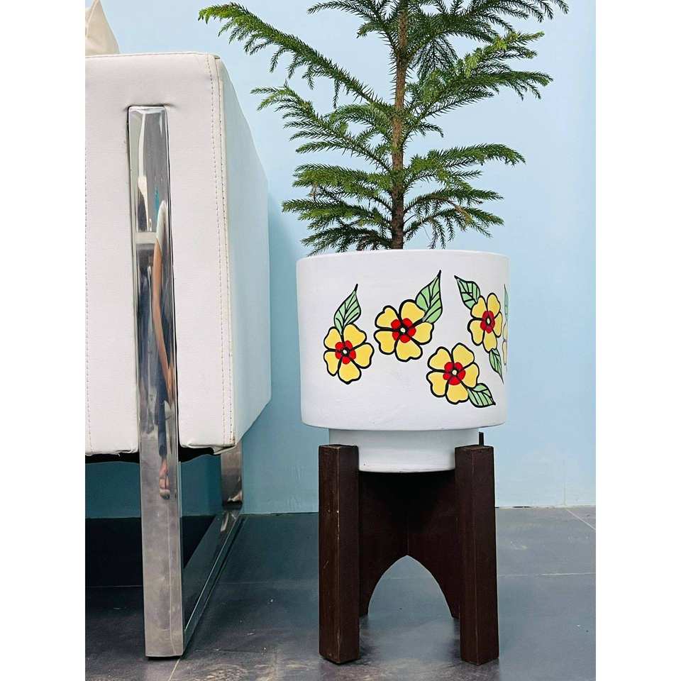 Ceramic Flower Pot with Wooden Stand SPT8 for Indoor/Outdoor Plants & Decor
