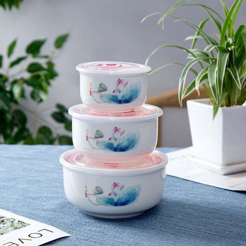 Ceramic Fresh-Keeping Bowl Three-Piece Sealed Bowl With Cover Set Bowl Gift Box Practical Opening Event Gift Wholesale