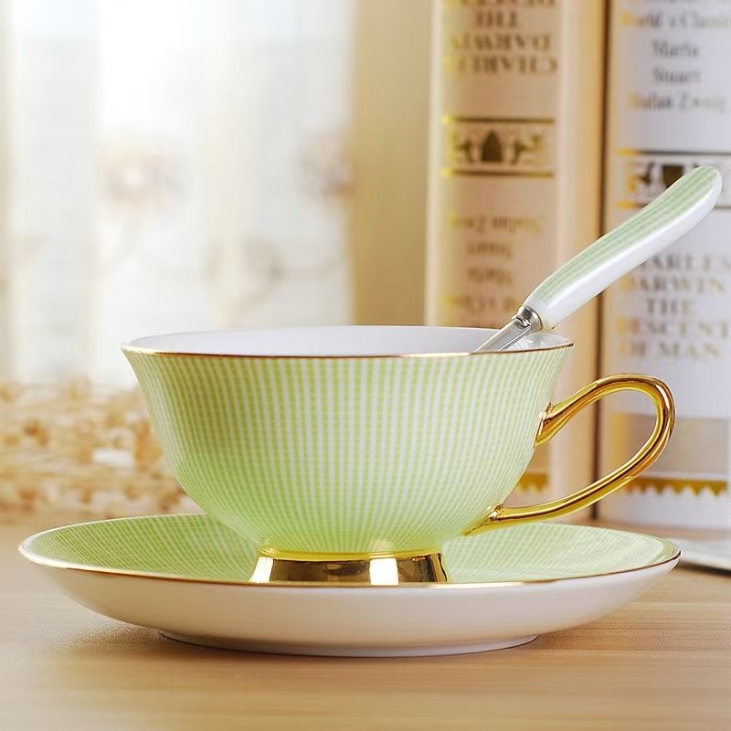 Ceramic Gift Bone China Coffee Cup and Saucer European Afternoon Tea Black Tea Cup Retro Gold-painted Coffee Cup and Saucer Set