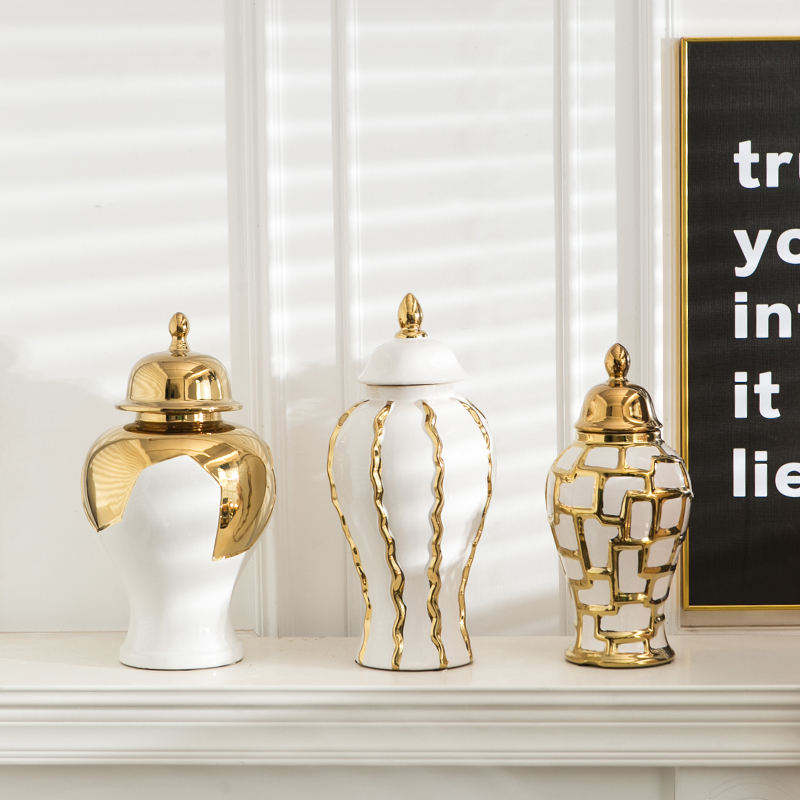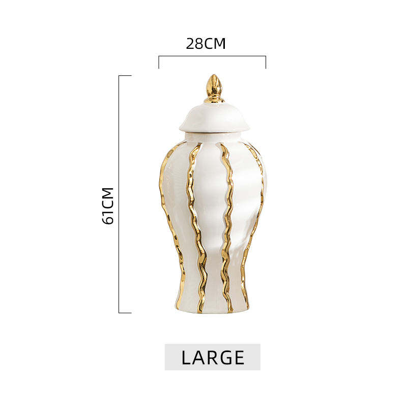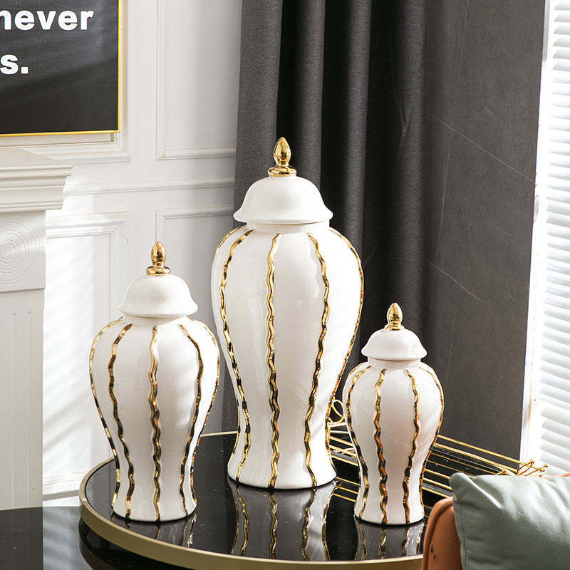 Ceramic Ginger Jar with Gold Stripe and Lid, Ceramic Flower Vase for Hotel, Ceramic and Porcelain Vases for Wedding Home Decor