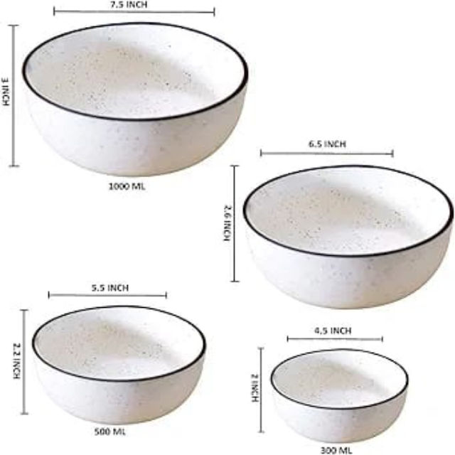 Eco-Friendly & Sustainable 1000 ML Ceramic Mixing Bowls Customized Set of 4 White Matt Black Dishwasher Safe for Parties