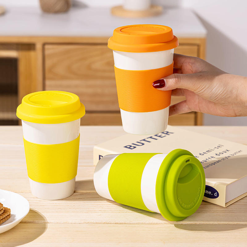 Ceramic Mug Solid Color Handleless Push Pull Lid Student Coffee Tea Cup Dishwasher Safe Gift Use