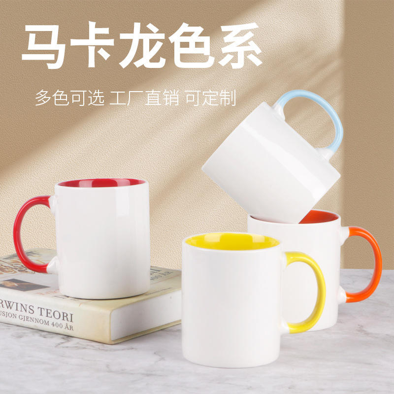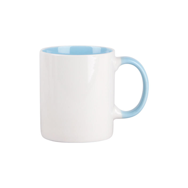 Ceramic Mug Solid Color White With Blue Inner And Handle For Gift Or Advertising Use