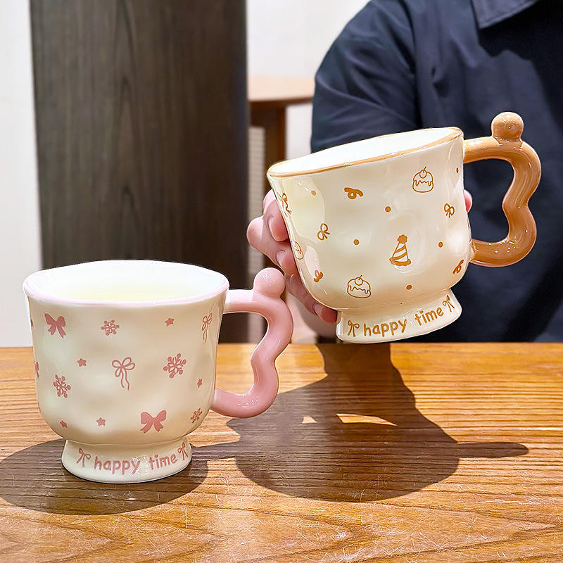 Ceramic Mug With Handle And Spoon Cartoon Pattern Happy Time Design For Gift Occasion Single Cup Spring 2025