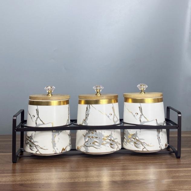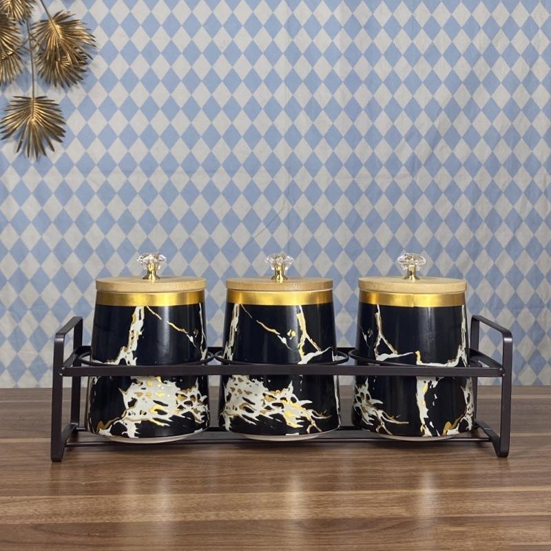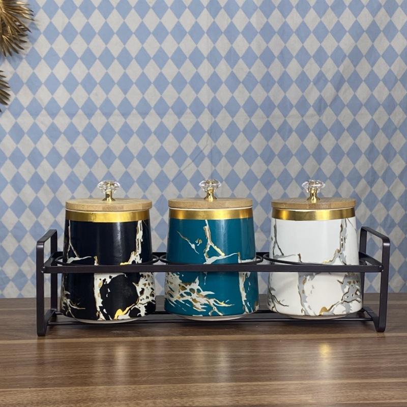 Ceramic Spice Jars Set With Wooden Lids Airtight Storage 3.1-4L Nordic Style Kitchen Container For Grain And Spices