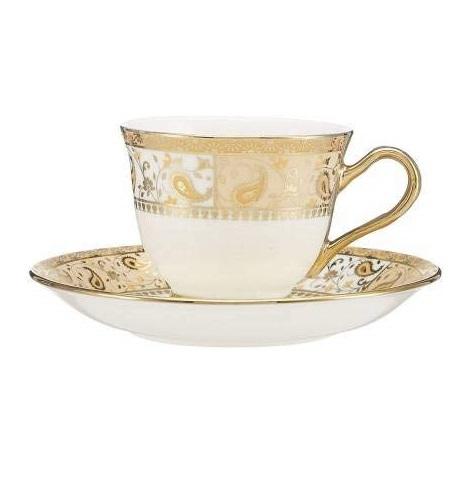 Ceramic Tea Cup Saucer Set Set of 6 Teal Green with Real Gold Line 180ml Cup Set of 6 for Tea Glossy Finish Real Gold Line