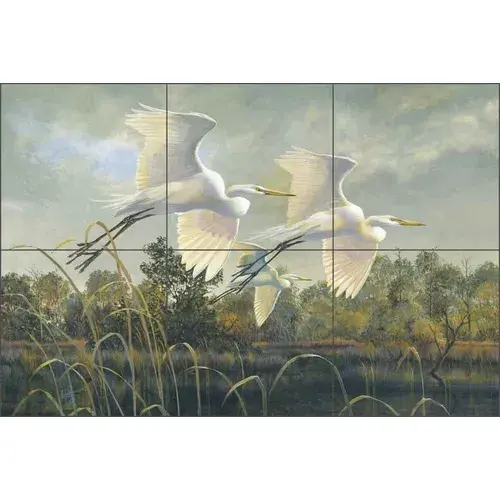 Ceramic Tile Mural REB023 Peel and Stick Bird Wildlife Lodge Art for Living Room Indoor Accents Backsplash Binks Egret Birds