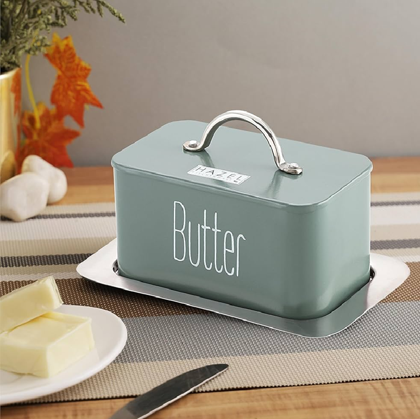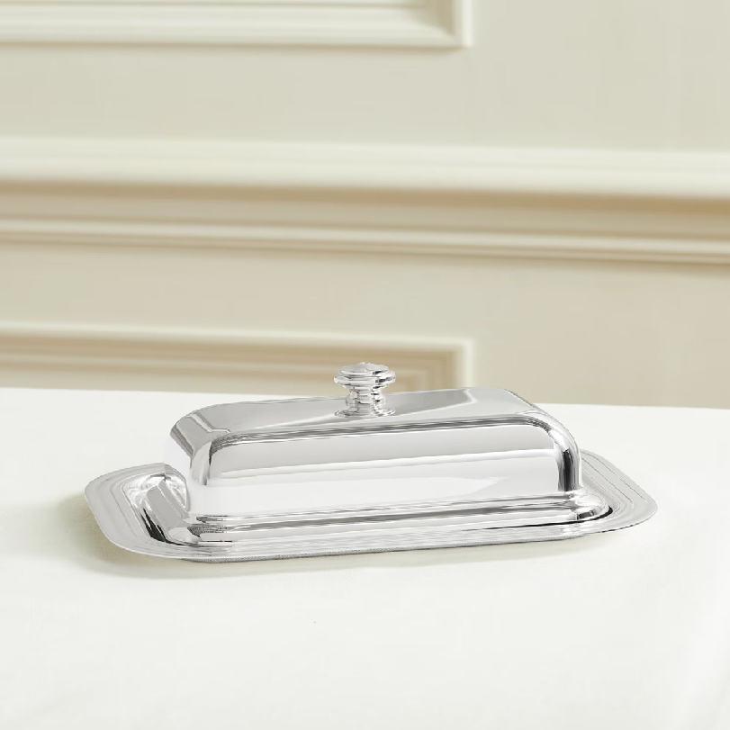 Ceramic butter dish, creamy white, decorative knob, porcelain, rustic kitchen, elegant design, classic serveware.