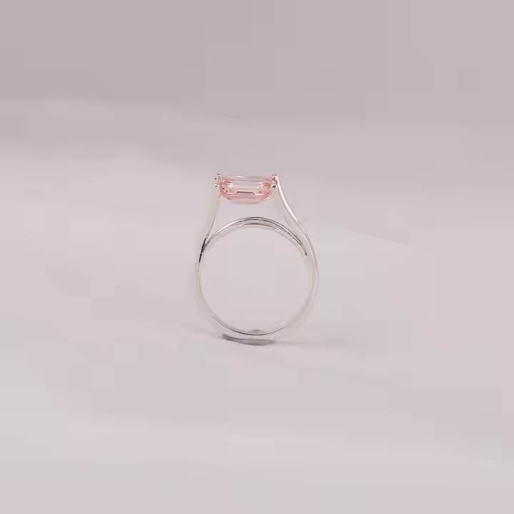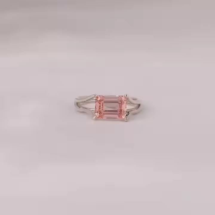 Certified 2.35 CT Pink Emerald Cut Lab Grown Diamond Engagement Ring in 14KT Solid Gold Solitaire Setting for Girls