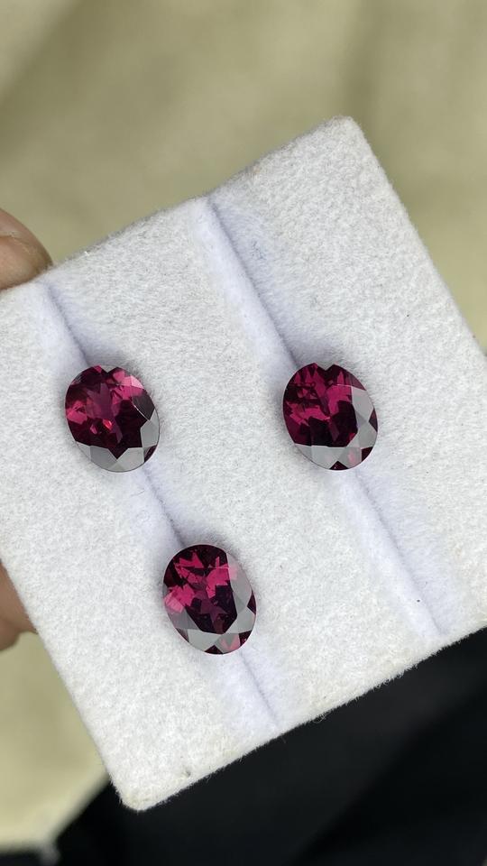 Certified 3 Piece Set Of 9x7 MM Natural Rhodolite Garnet Oval Cut Stones With Excellent Color Quality Loose Gemstones 6.62 Carat