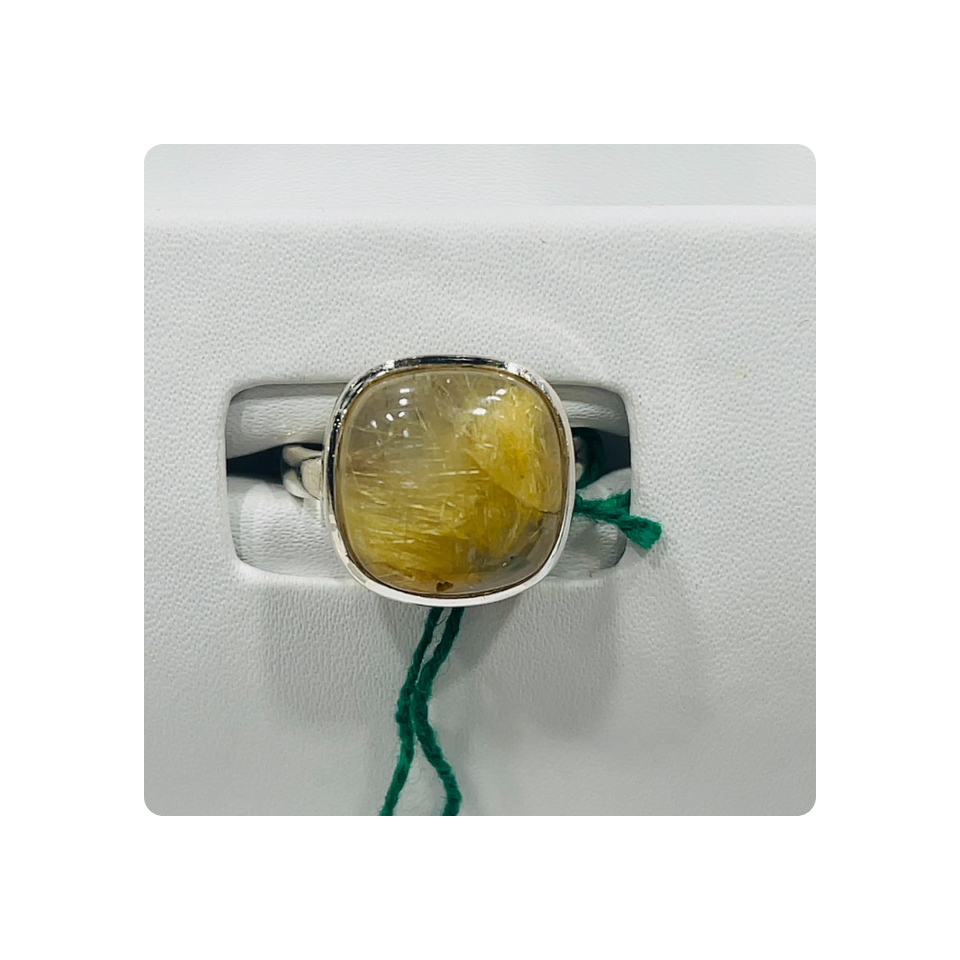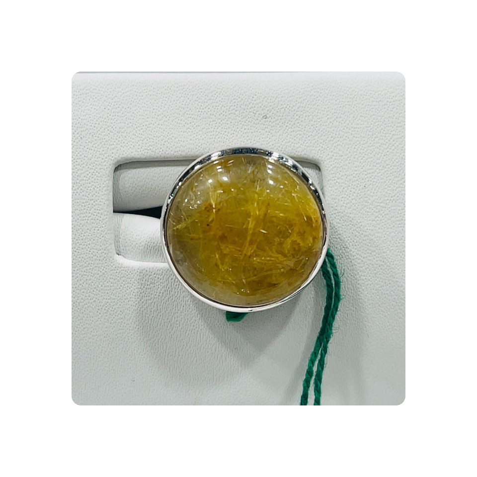 Certified 925 Silver Large Size Men's Wedding Ring Handmade Golden Rutile Gemstone Cabochon Quartz for Party Anniversary Jewelry