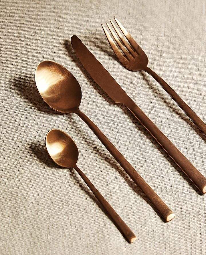 Certified Grade Cutlery Set with Stainless Steel Metal and Golden & Copper Finished Cutlery Set For Sale