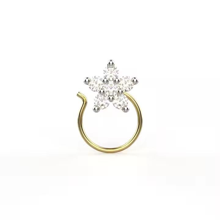 Certified Lab Grown 18K Yellow Gold Nose Pin Floral Design Fine Piercing Jewelry for Women Everyday Wear