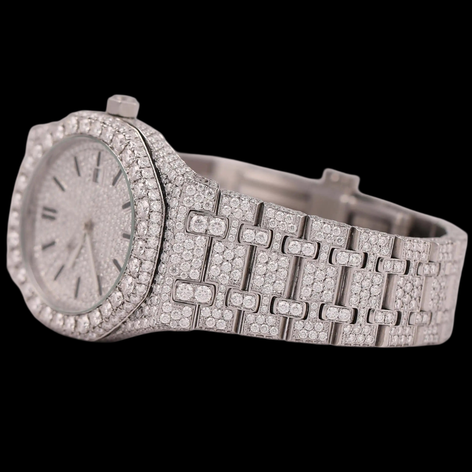 Certified Moissanite Brilliant Cut Diamond Fully Iced Out Hip Hop Style Fashion Stainless Steel Auto Date Features Man's Watch