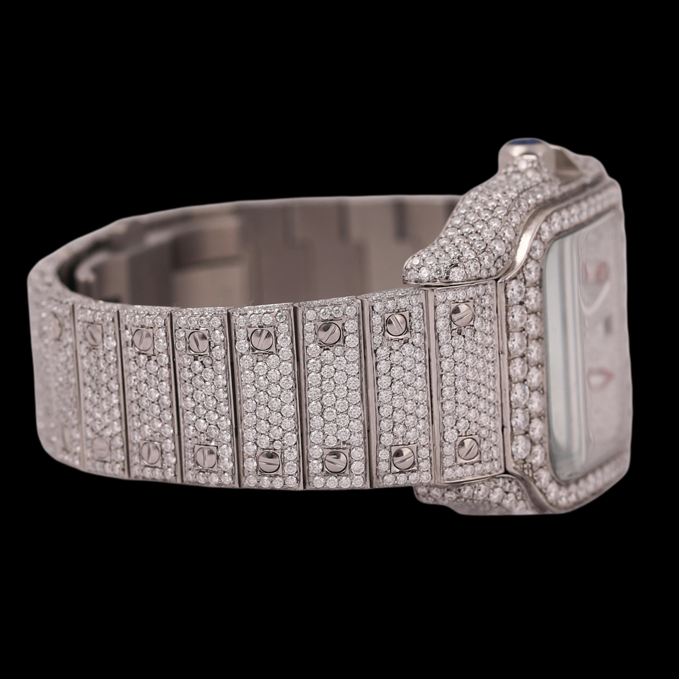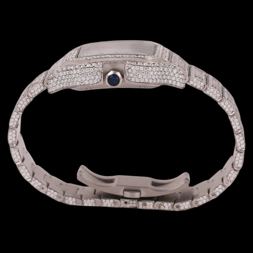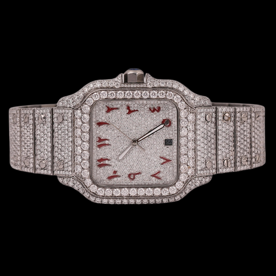 Certified Moissanite Diamond Square Shaped Dial Arabic Numerals Fully Iced Out Luxurious Stainless Steel Band Diamond Watch