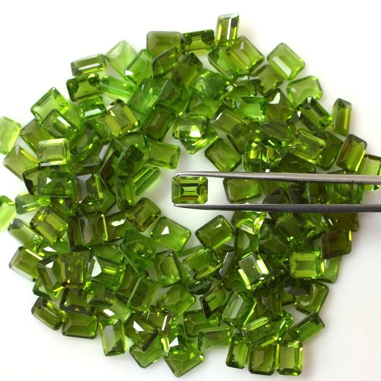 Certified Natural Peridot Octagon Cut Loose Gemstones 5x7mm Calibrated Peridot Cut Stone Beads for Ring & Jewelry Making In Bulk