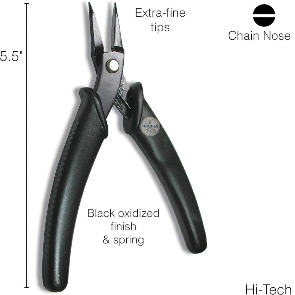 Chain Nose Pliers 5 Inches (140mm) Stainless Steel Head Black comfort Grip Handle Spring Tool Light Weight Smooth Work for DIY