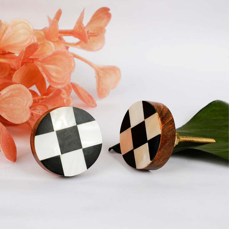 Chakra Design Black And White Resin Wood And MOP Cupboard Door Knob Door Knob Custom Color Shape Size Made in India