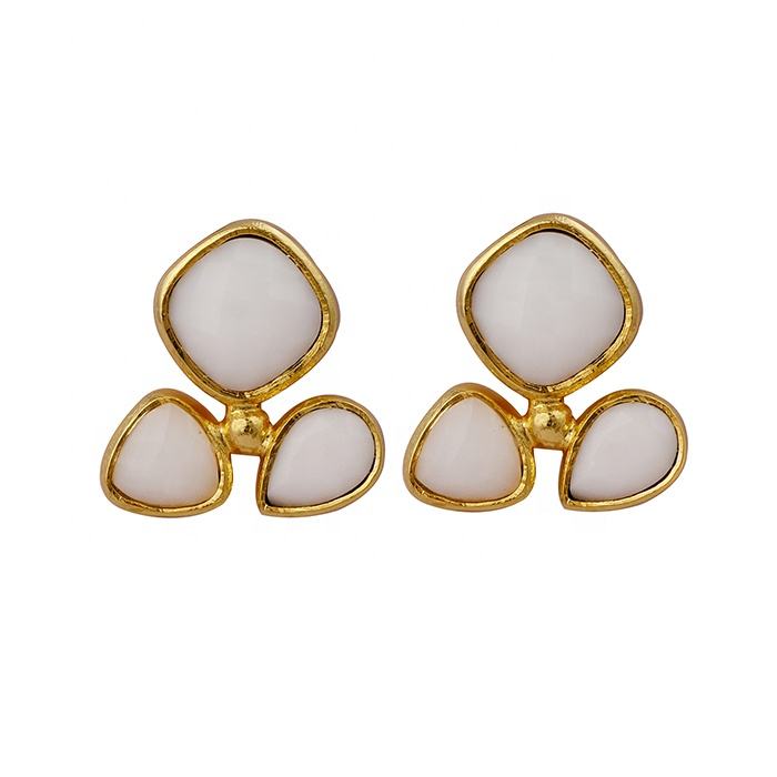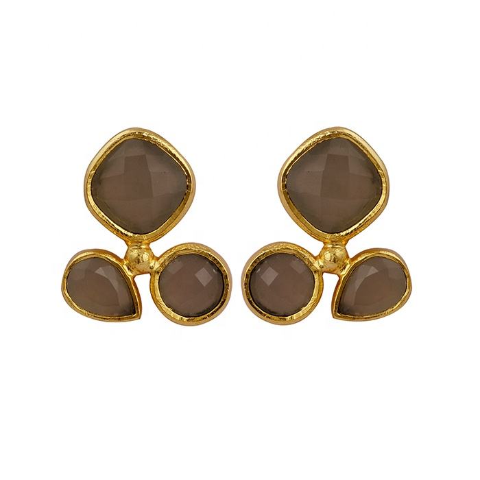 Gold Plated Chalcedony Gemstone Hook Earrings Classic Style Stud Earrings Stylish Drop Statement Jewelry for Engagement