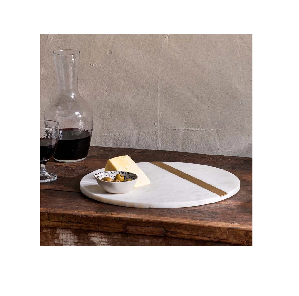 Champagne Marble and Brass 12" Lazy Susan Cake Turntable Rotating Serving Board Dining Table Organizer India Handicraft