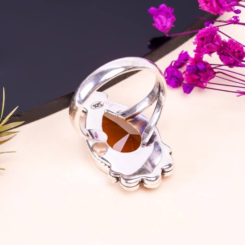 Champagne Quartz Gemstone Silver Ring 925 Sterling Silver Handmade Jewelry Gift For Women Girls