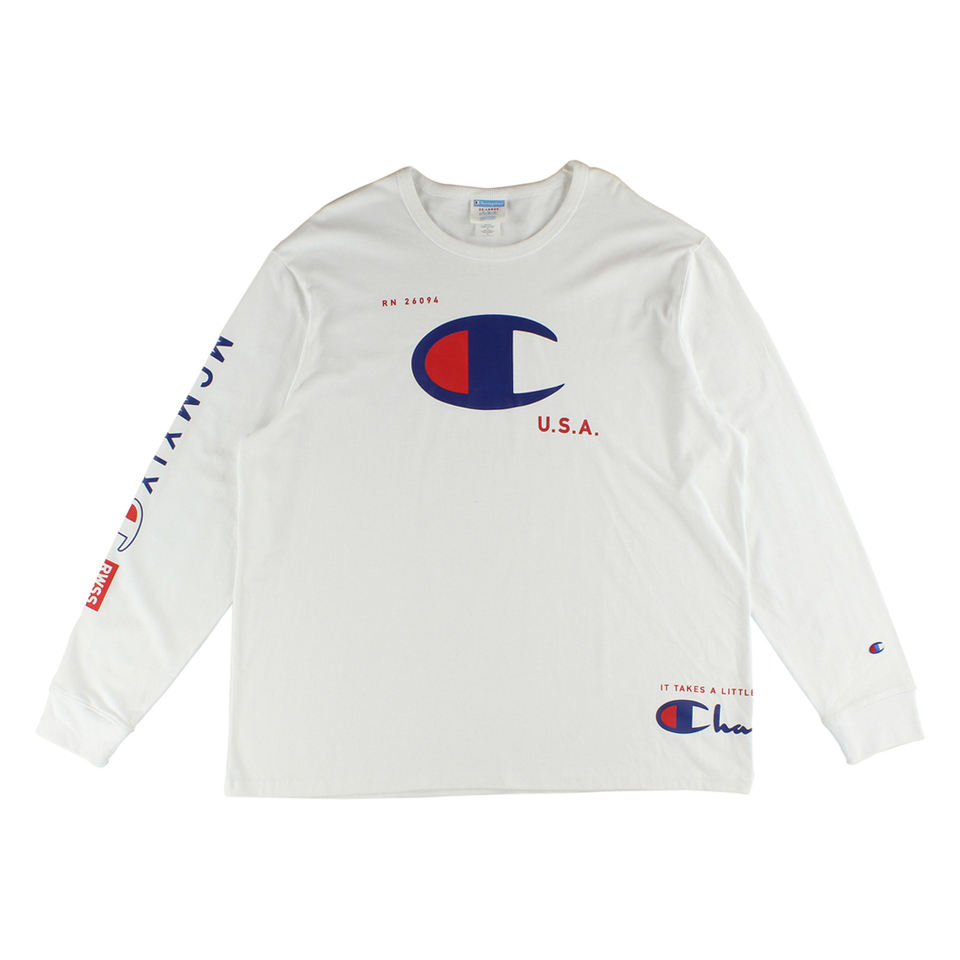 Champion Ls Heritage Tee Mens Active Shirts & Tees Color: White/Red/Blue | 100% Authentic
