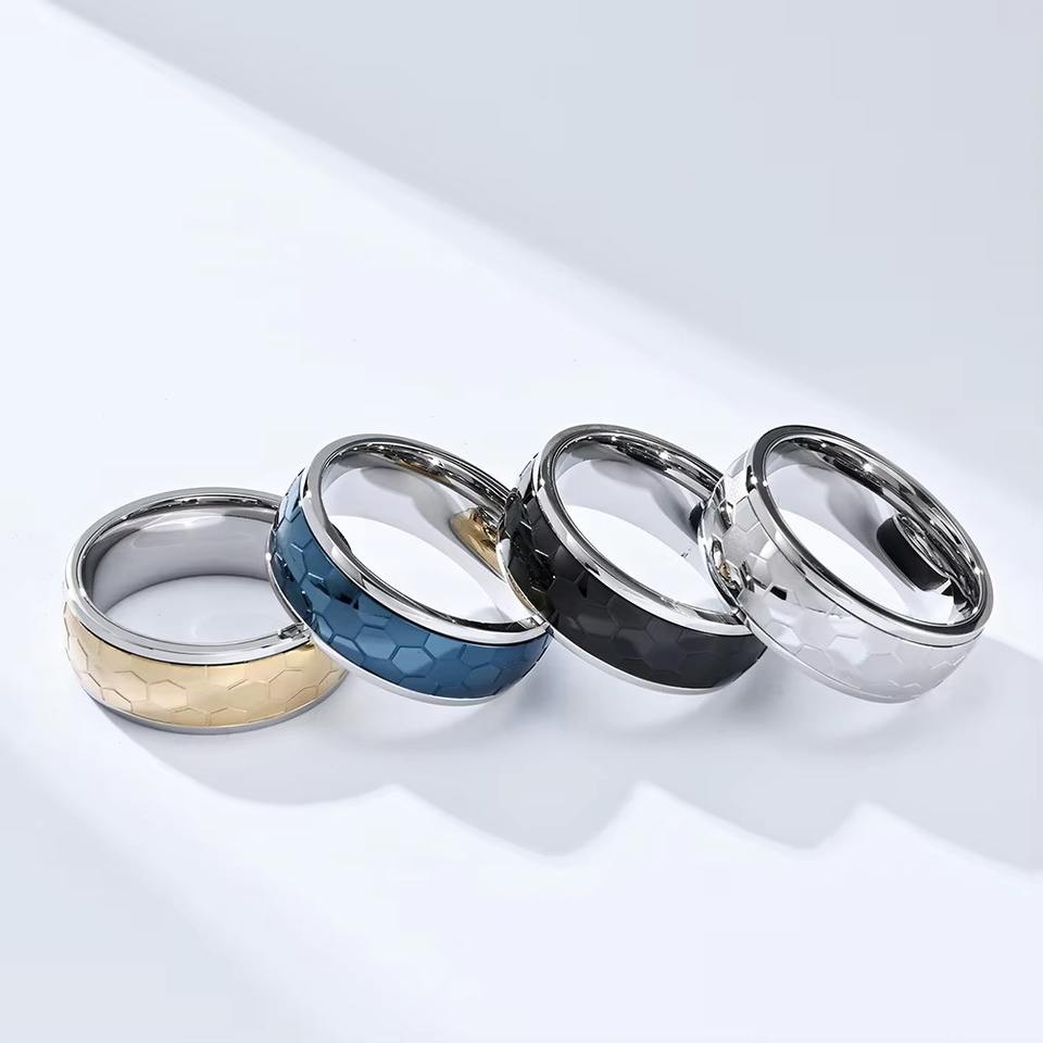 Championship Football Rings 8mm Gold Plated Stainless Steel Spinner Rings for Men Blue Black Color Stylish Trendy Gift for