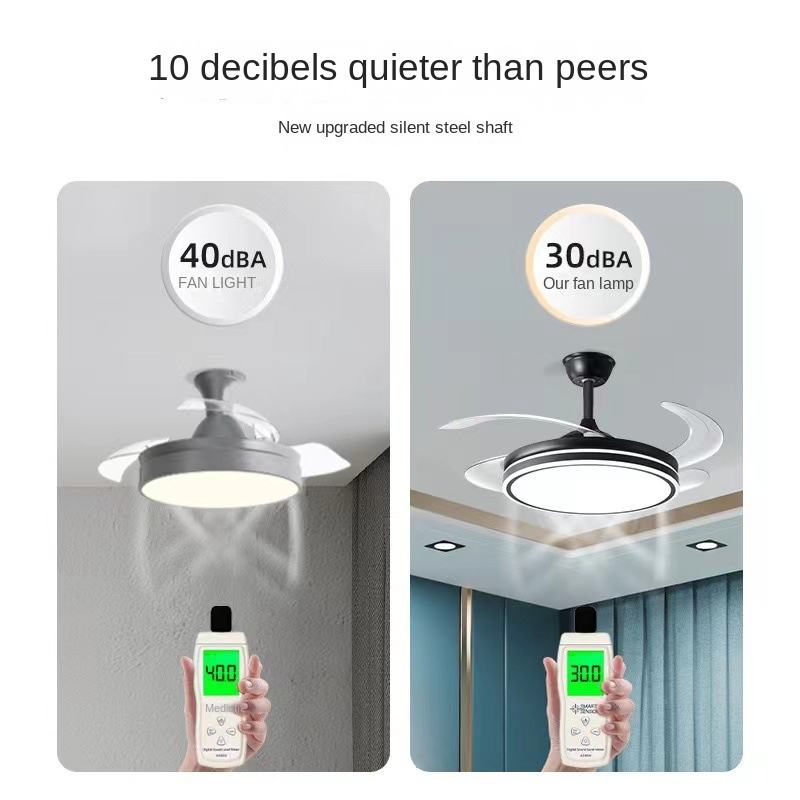4 Blades All Copper LED Ceiling Fan Light Remote ABS Retractable Moto Chandelier for Household USB Gas Powered Mechanical