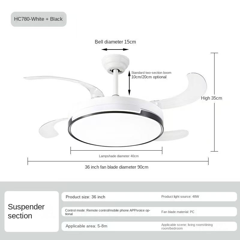 Foldable, With Light, Energy Saving, BLDC Motor, Reversible Airflow, Quiet Design, Air Purification Function, Remote Control