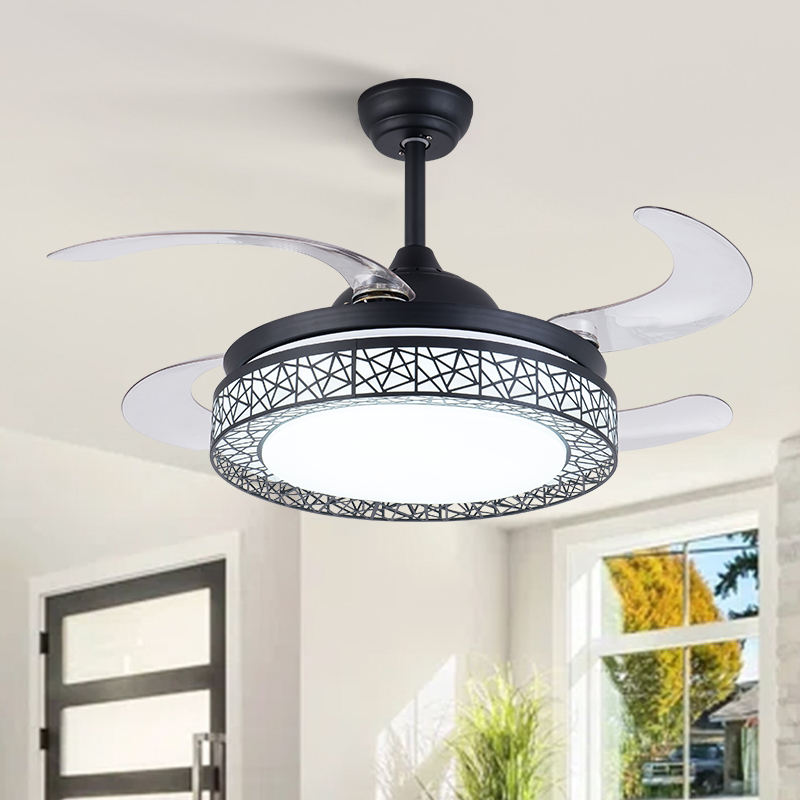 Chandelier Fan 42 Inch Invisible Retractable Ceiling Fan Smart 3 Color Dimmable Ceiling Fan with Light Ventilador De Techo