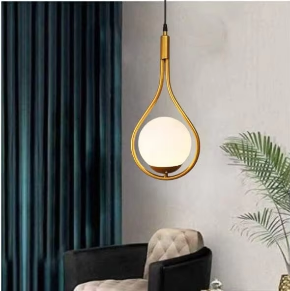Chandelier Hanging Light Gold Modern Ceiling Pendant Lamp with White Glass Adjustable Cord Ceiling Light for Bedroom
