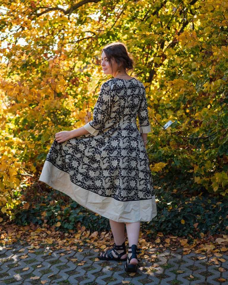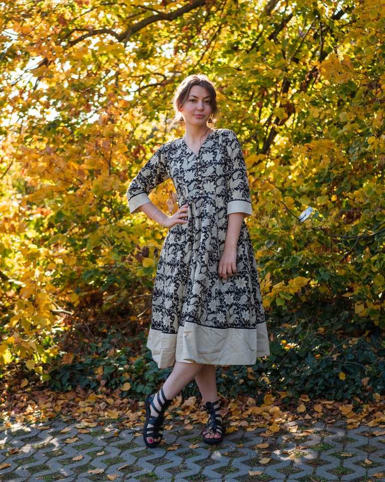 Chandrika Calf Length Cotton Dress Hand Block Printed Ethical Fashion