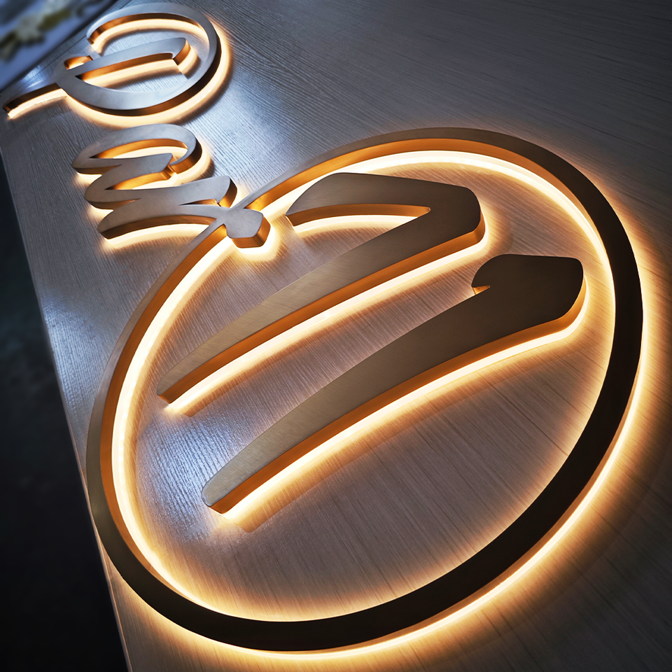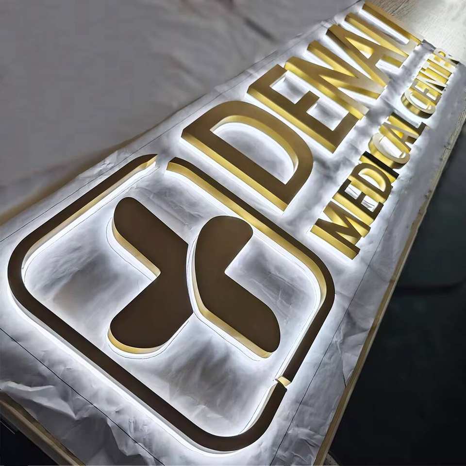 Channel Stainless Steel 3D Letter Board Metal Backlit Sign gold LED