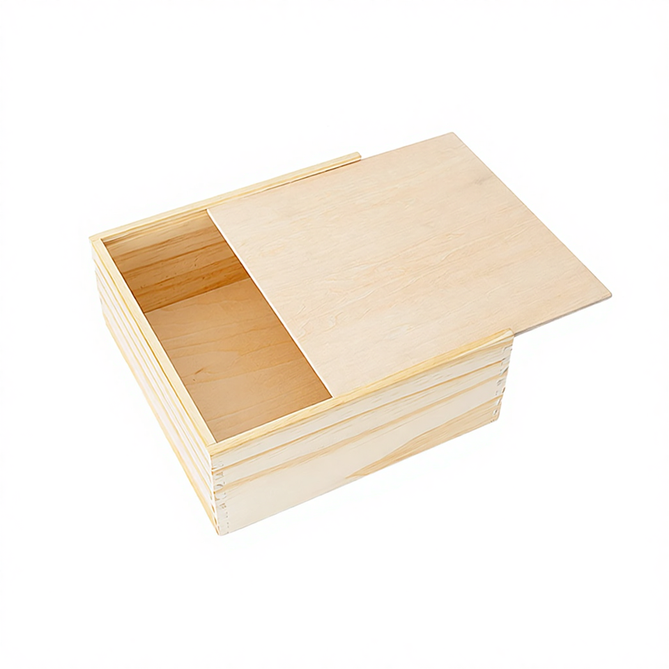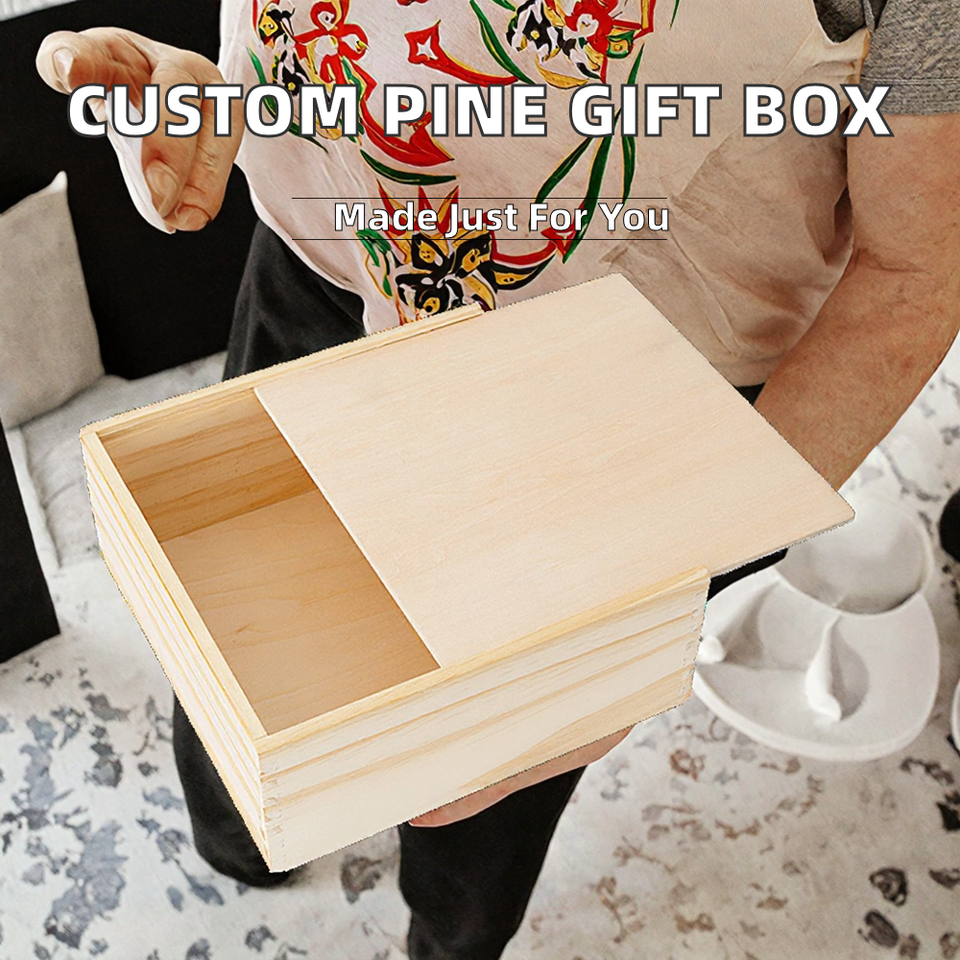 Chaofu Custom Pine Wood Reusable Folk Art Tabletop Gift Box with Sliding Lid for Holiday Decoration & Gift Packaging