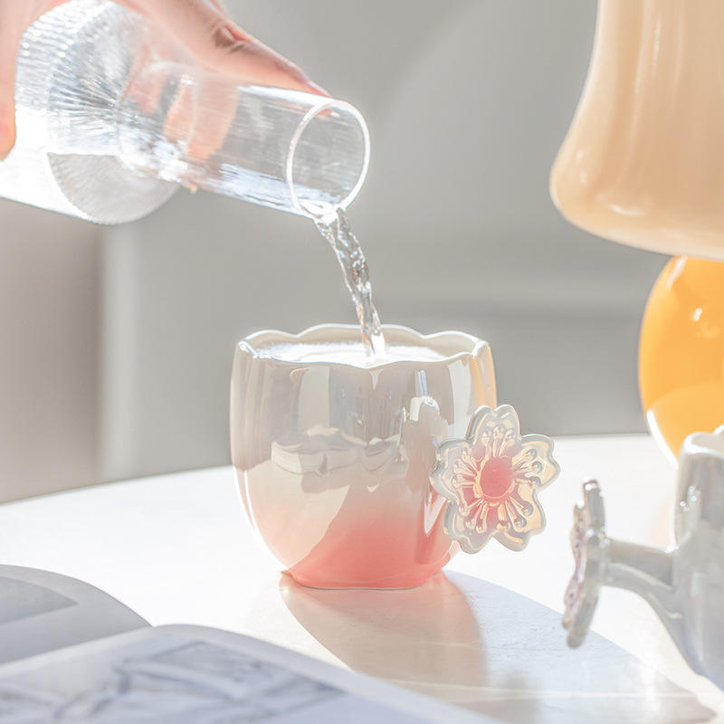 Chaozhou Ceramic Cherry Blossom Mug Pink Purple Blue With Handle For Coffee Gift Present 60 Boxes Set