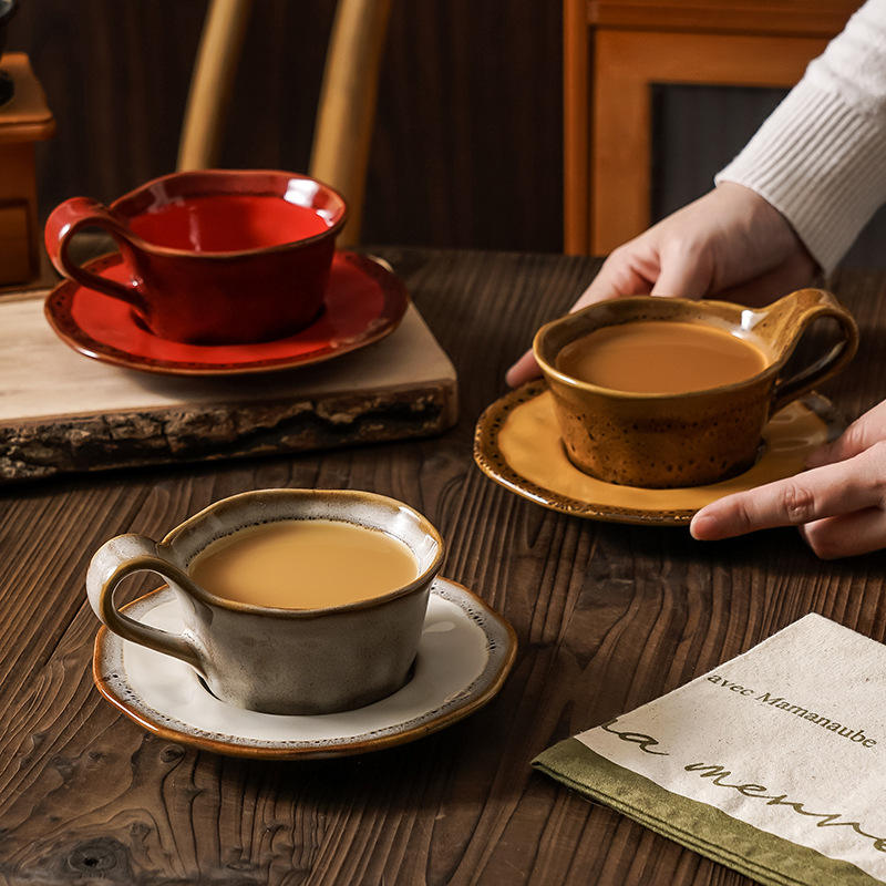 Chaozhou Ceramic Coffee Cup And Saucer Set 160ml Round Solid Color Handle For Afternoon Tea