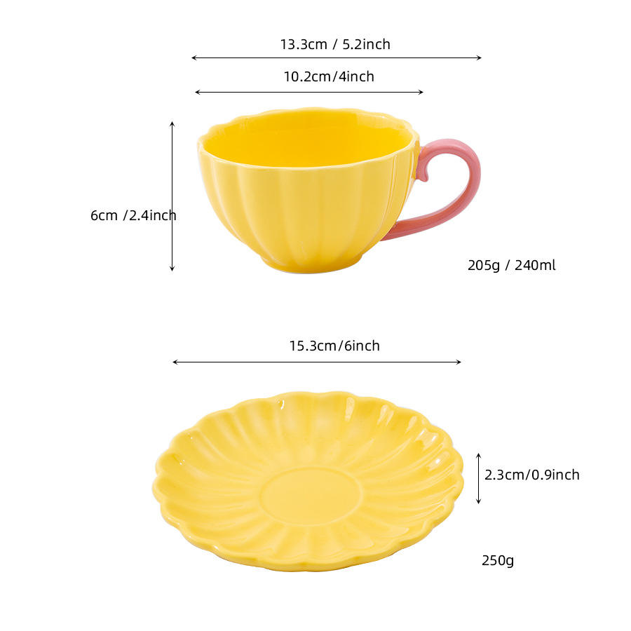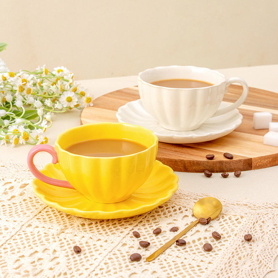 Chaozhou Ceramic Coffee Cup And Saucer Set Yellow Solid Color Korean Style Elegant Design For Presents DB1551