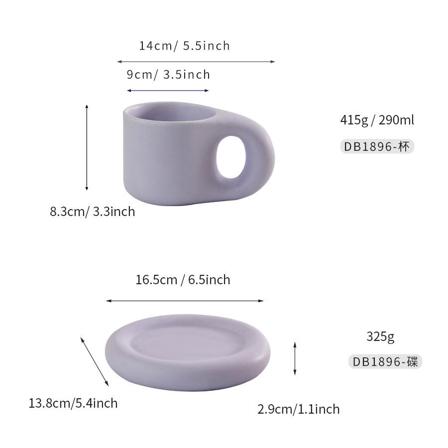 Chaozhou Ceramic Coffee Cup And Saucer Set Solid Color Couple Design For Presents DB1896