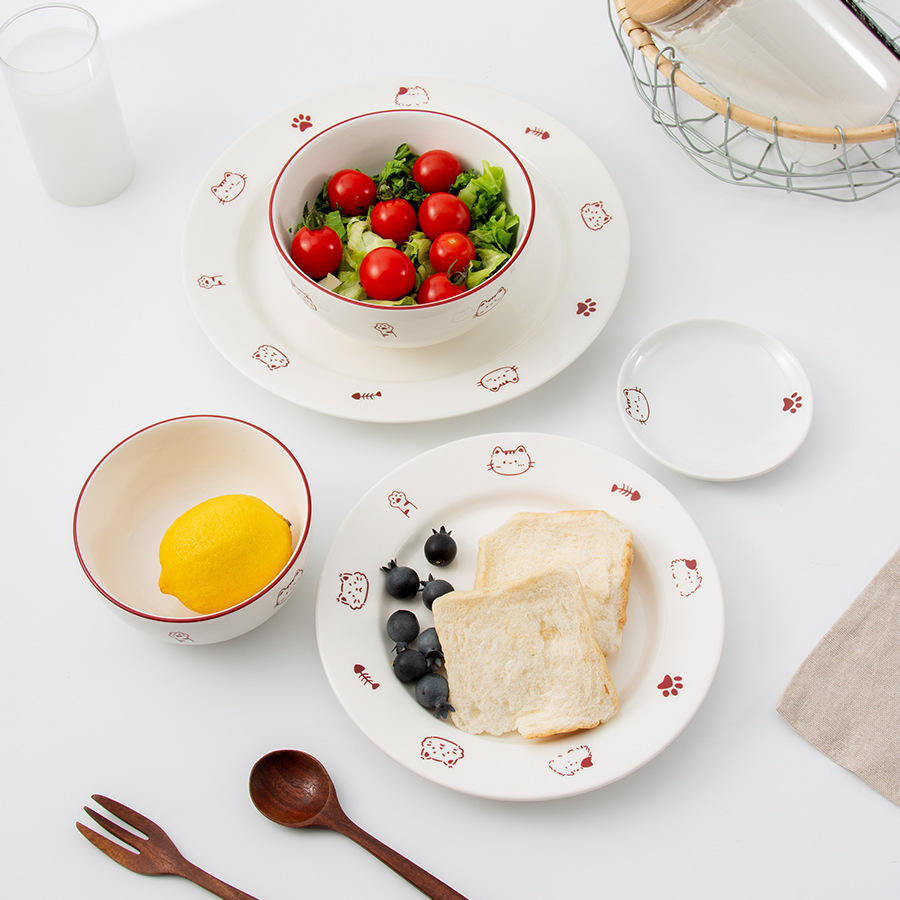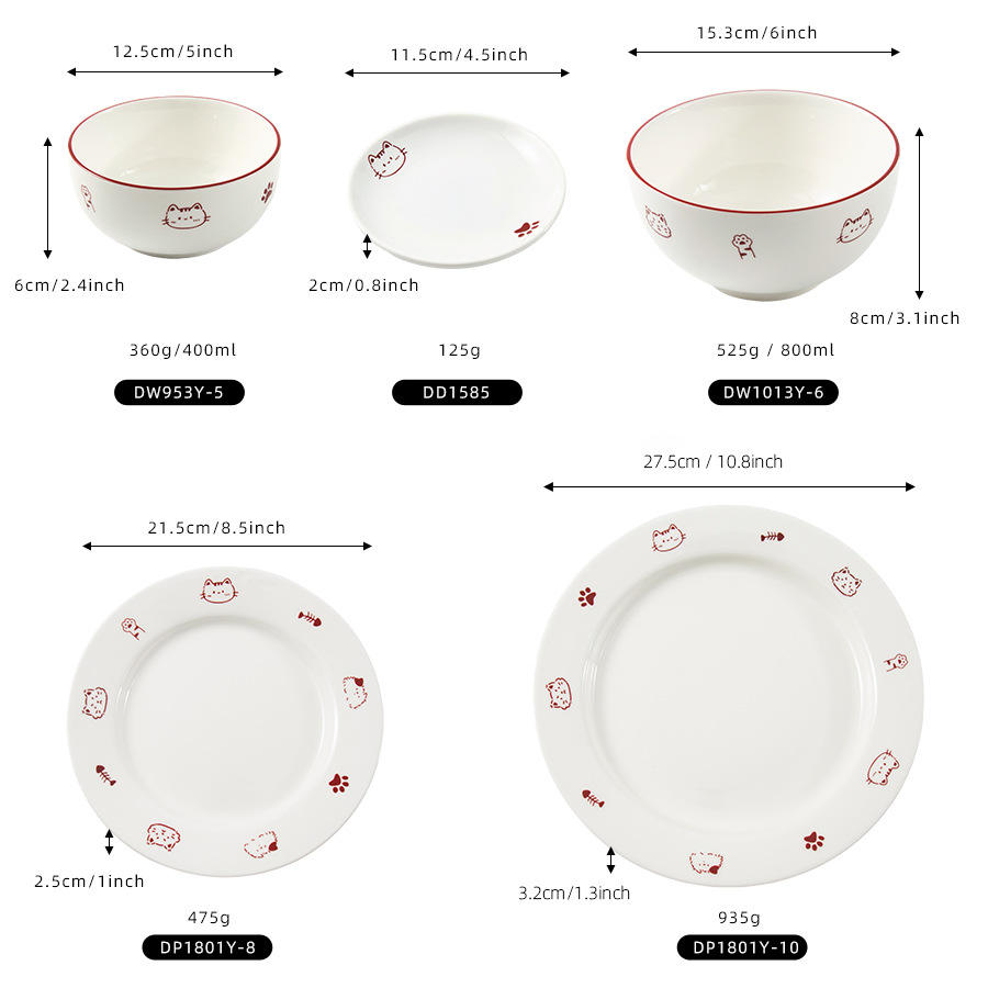 Chaozhou Ceramic Dinnerware Set Round Cartoon White Porcelain Plates Bowls Gift Box Customizable For Adults