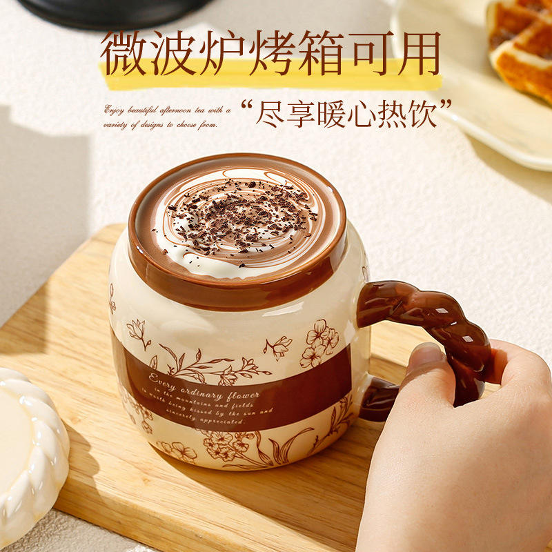 Chaozhou Ceramic Mug With Flower Pattern Retro Design For Home Office Use