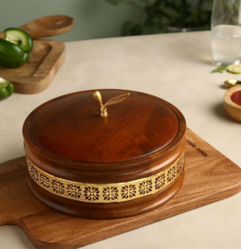 Chapati Storage Container for Roti Dabba Brown Color Wooden Roti Box with Lid Storage Dining Roti Box
