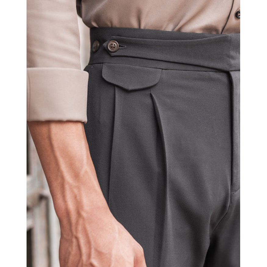 Charcoal Seville Double Pleated Gurkha Trousers