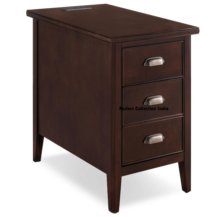 Charging Station and USB Ports End Side Table/BED SIDE TABLE /SIDE TABLE WITH 2-PLUG AC and USB OUTLET in CHOCOLATE CHERRY