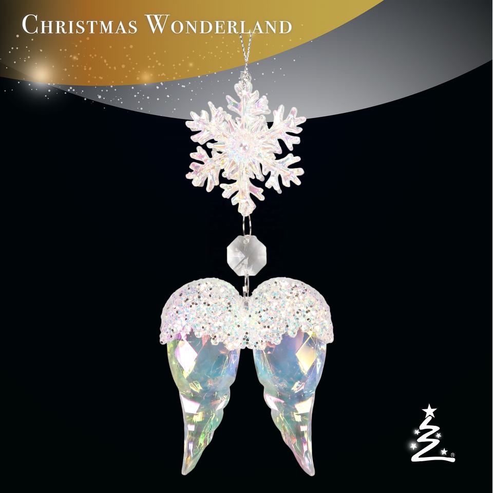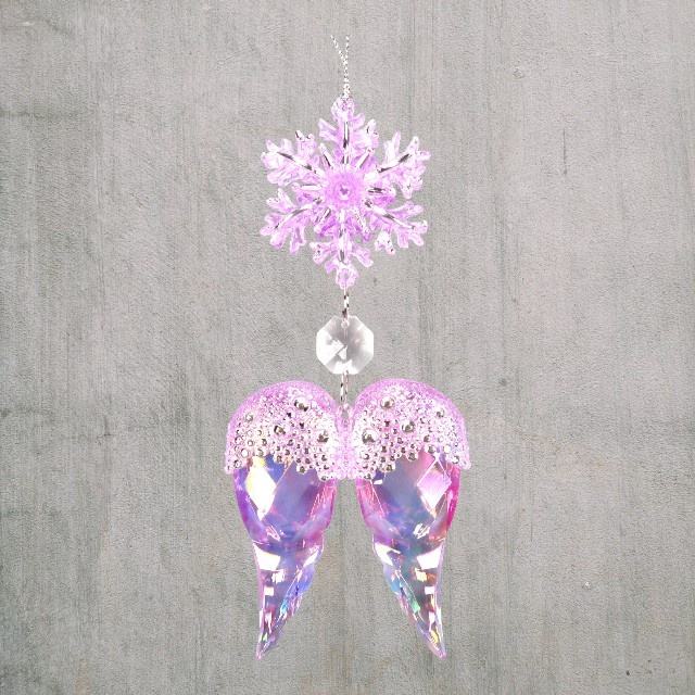 Charm Christmas New Year Decoration Clear Transparent Light Blue Lake Blue Pink Purple Irrid Plated Acrylic Angel Wings Ornament