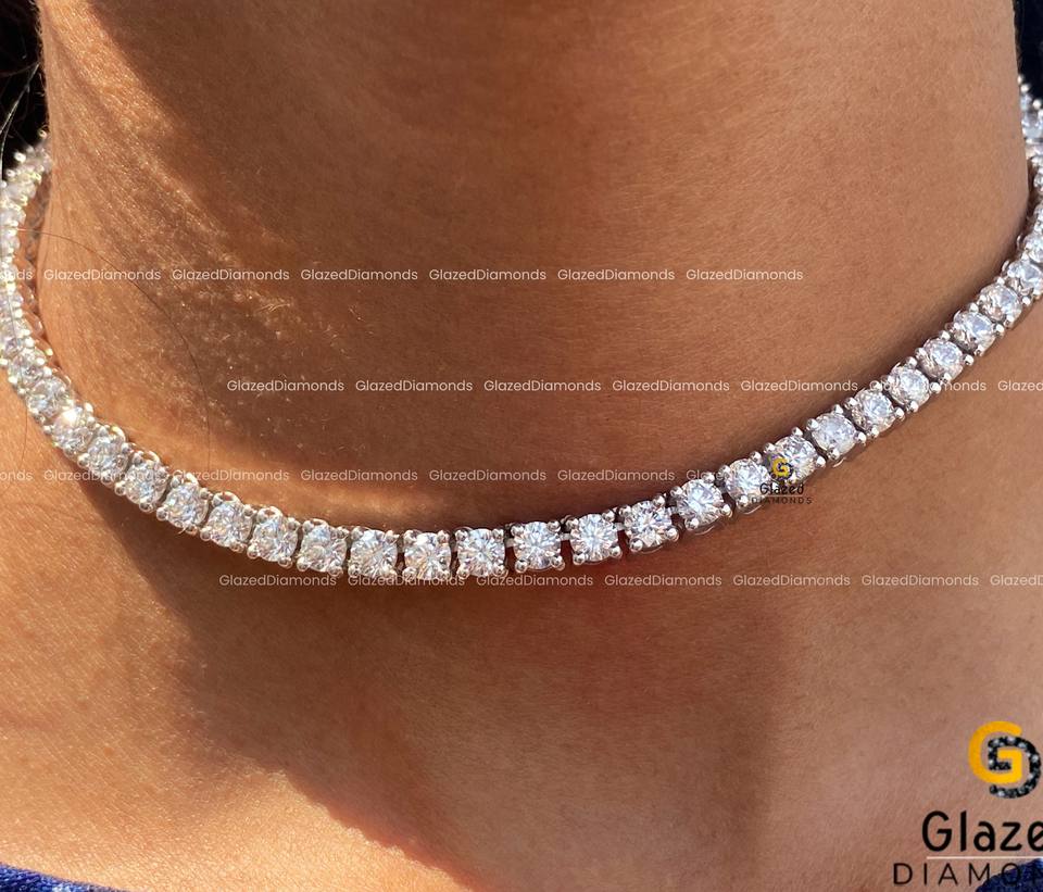 Charm New 925 Sterling Silver Tennis Chain for Unisex Iced Out by Round Brilliant Cut Lab Grown Diamonds in VVS Clarity