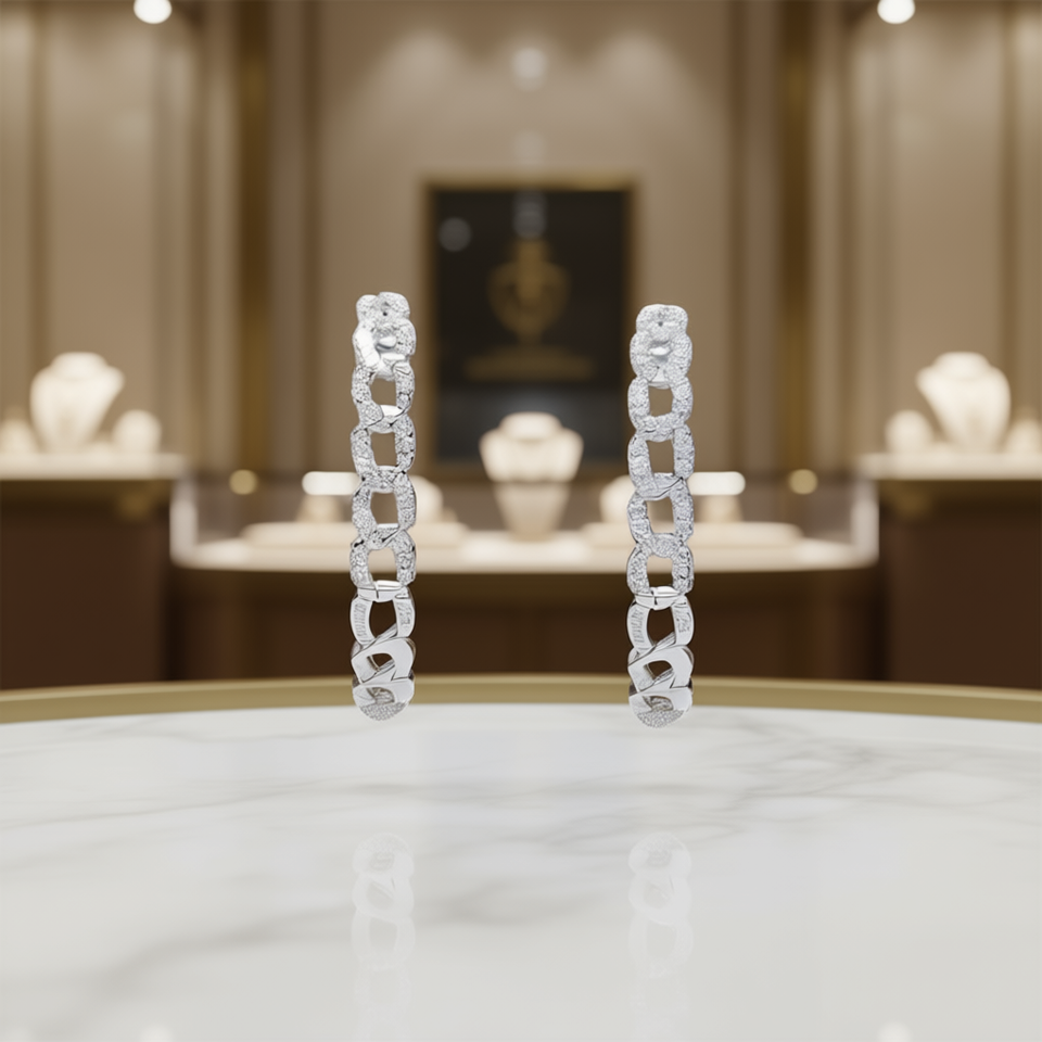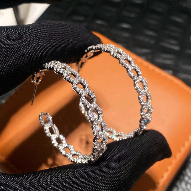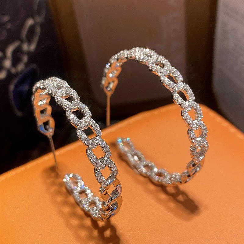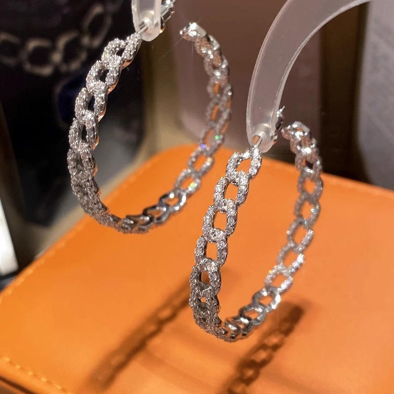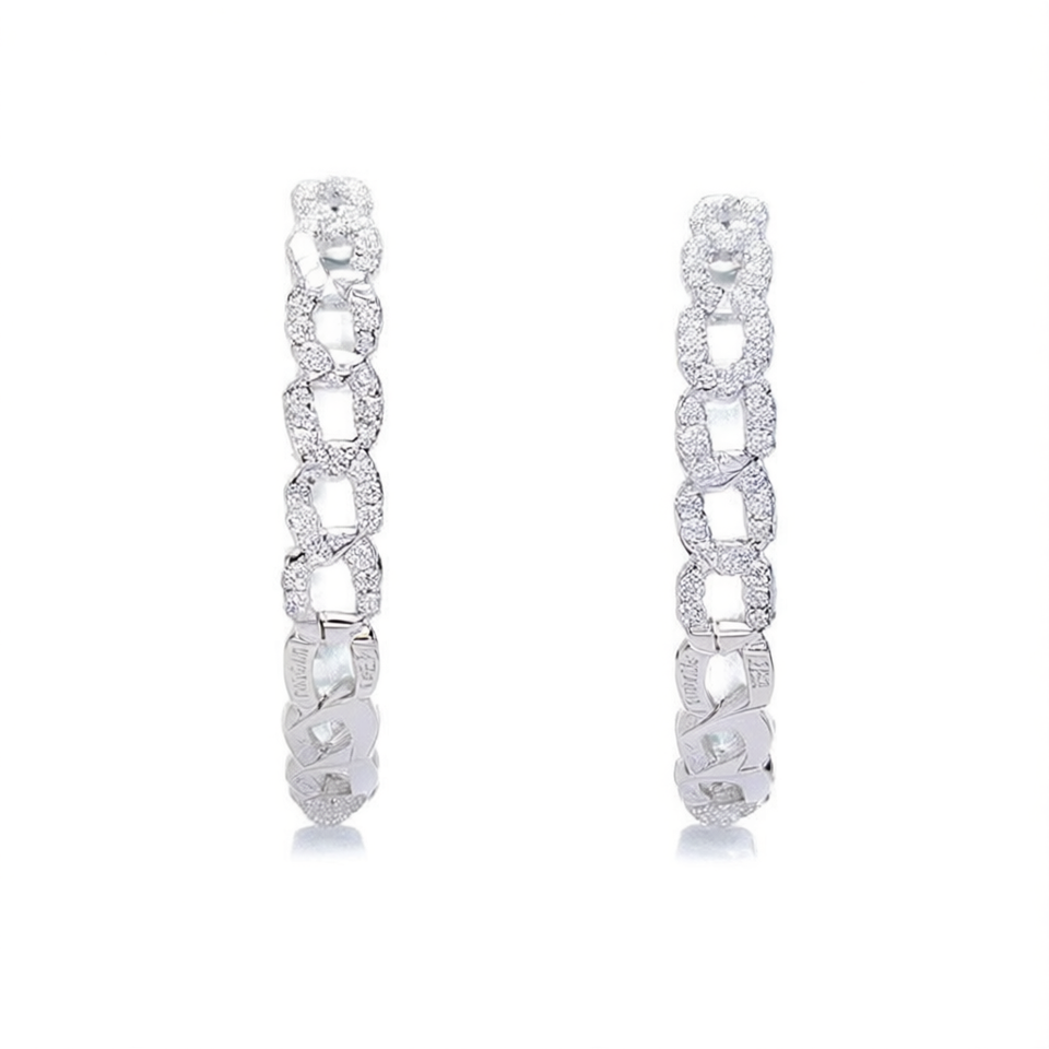 Charme Luxury White Gold Plated Hoop Earrings 925 Silver Crystal Rhinestone Micro Insert Geometric Design Unisex Everyday Wear