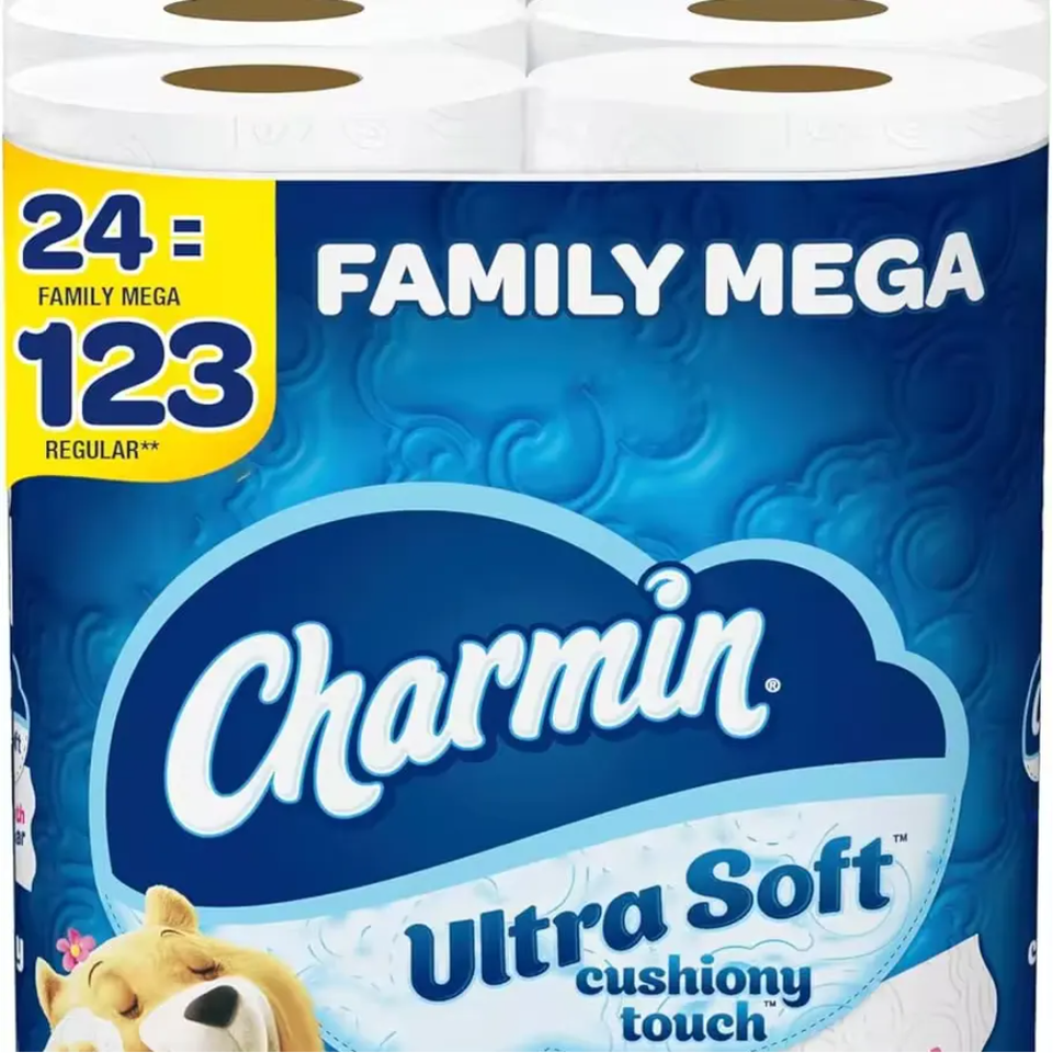 Charmin Ultra-Soft Touch Toilet Paper 24 Family Mega Rolls Equivalent to 123 Regular Rolls Made from Virgin Wood Pulp