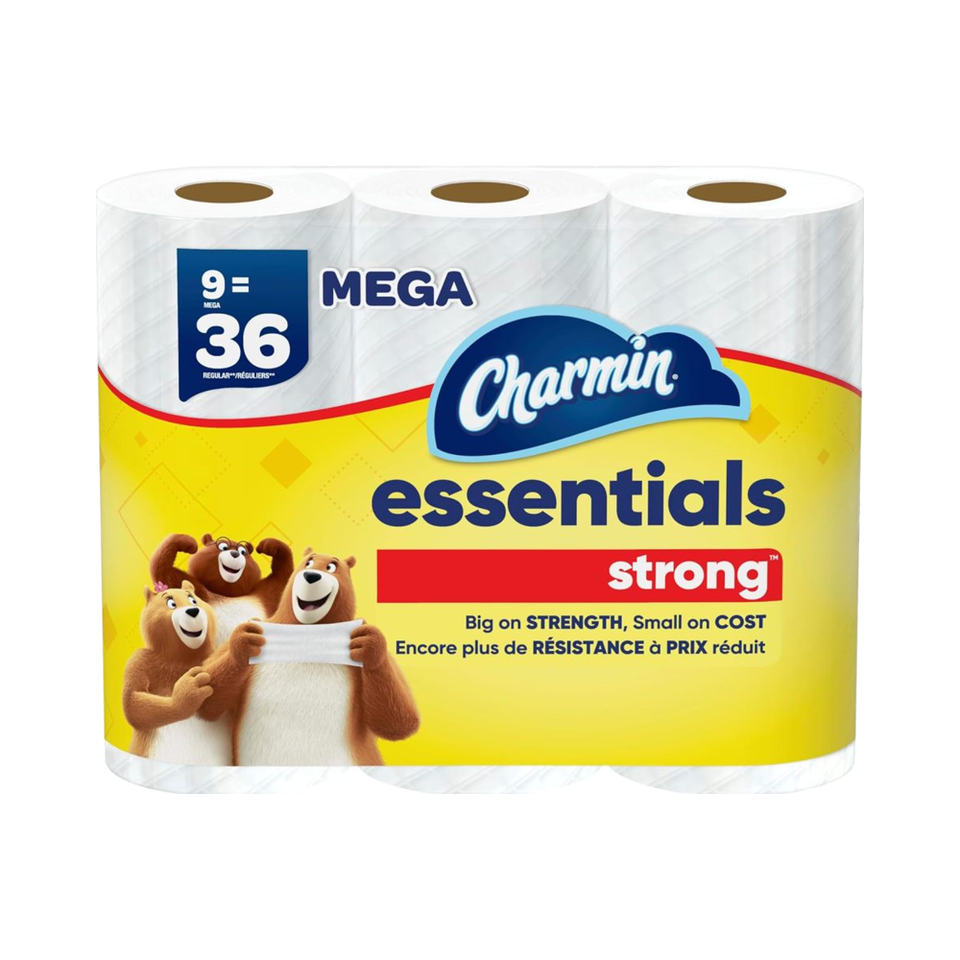 CharminEssentials Strong Soft Disposable Virgin Wood Pulp Eco-Friendly Toilet Paper 9 Mega Rolls = 36 Regular Rolls