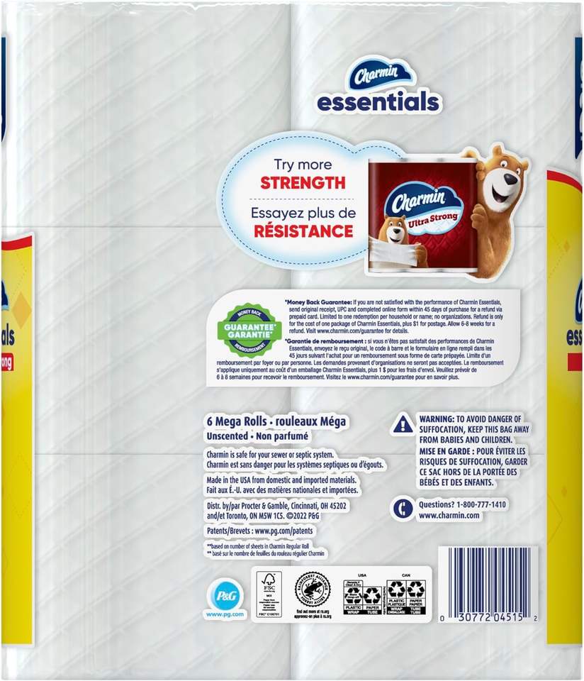 Charmine Essentials 1-Ply Mega Rolls Strong Bathroom Tissue 6 ea