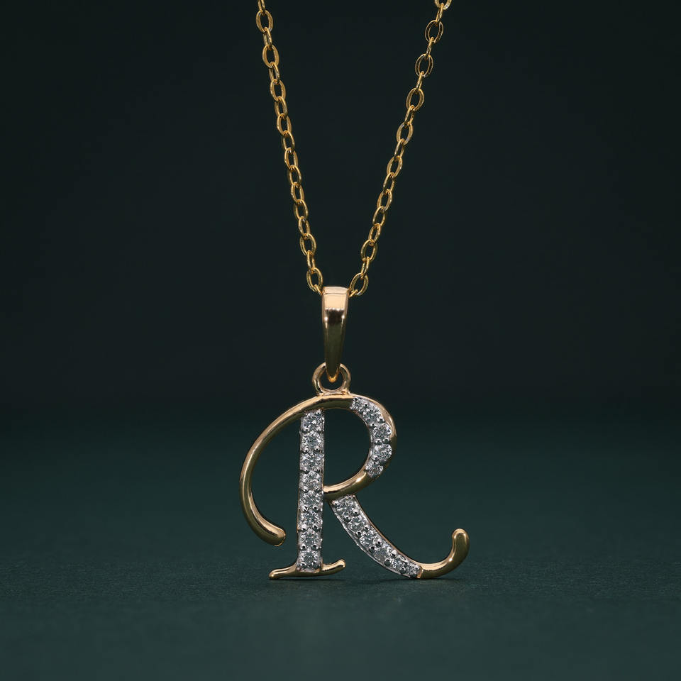 Charming 18k Gold Plated Classic Diamond 'R' Pendant with Round Brilliant Cut for Personalized Touch